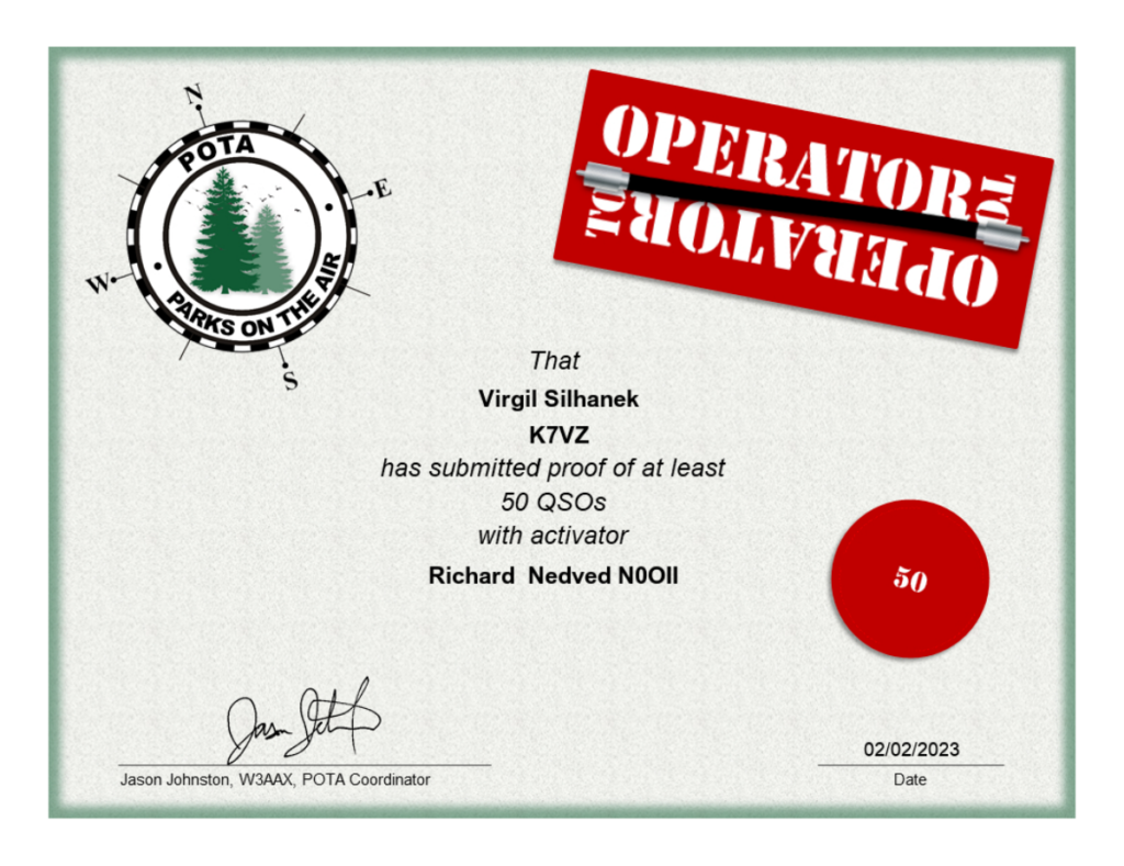 POTA – Operator to Operator – N0OII 50